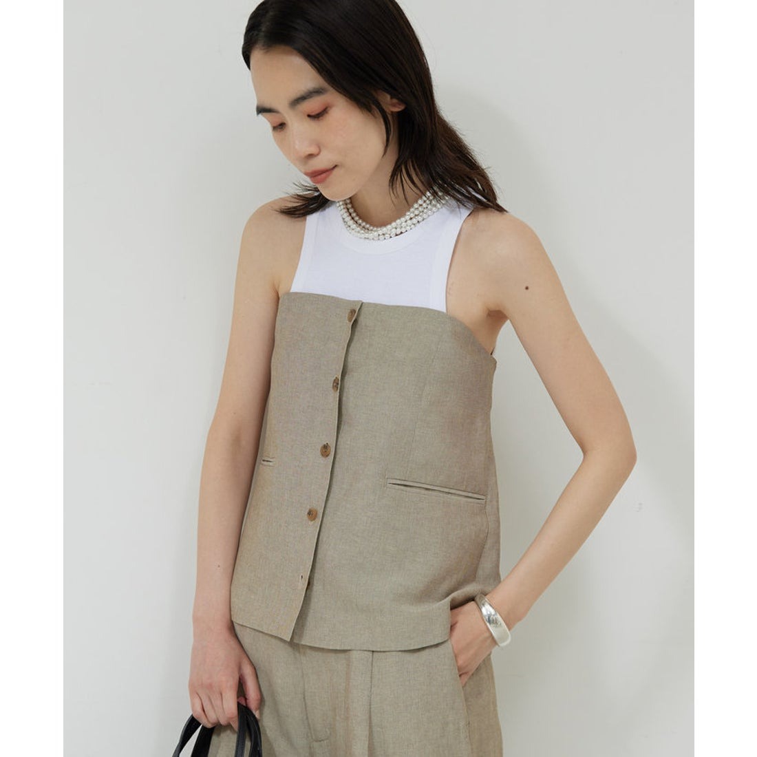 全体的にトーンを抑えた優しい雰囲気が特徴で、リラックス感のあるスタイルと好相性。