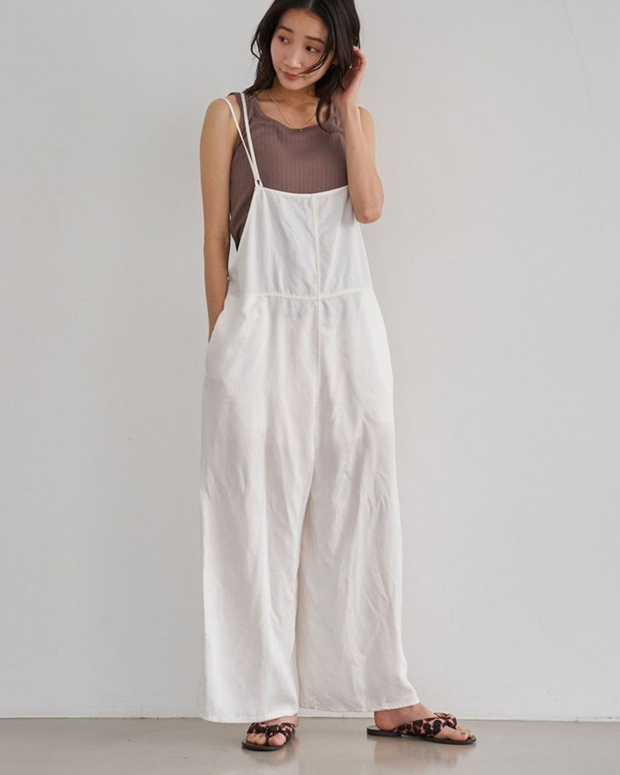 サロペットだと子供っぽく見えちゃう…という方はスカートの丈感や、トップスで大人の女性らしさをプラスしてみて。