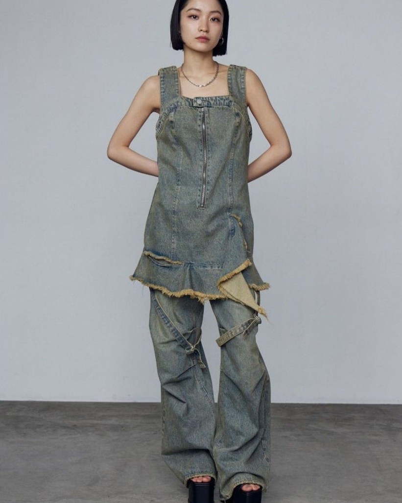 14.【デニムパンツ×デニムミニワンピースでワンランク上の上級者コーデ】