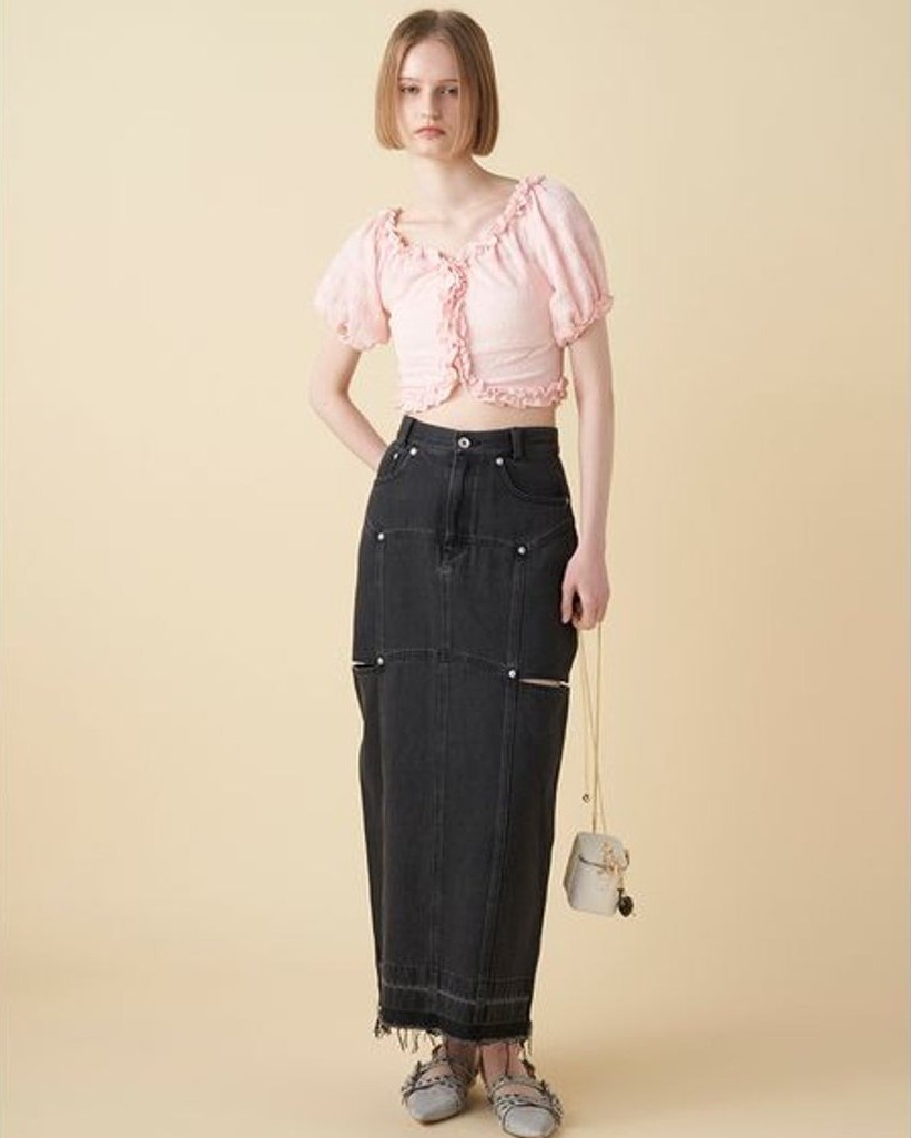 スカートやスリットが女の子らしさを出しつつも、デニム素材がカッコ良さを程よくプラスしてくれます。