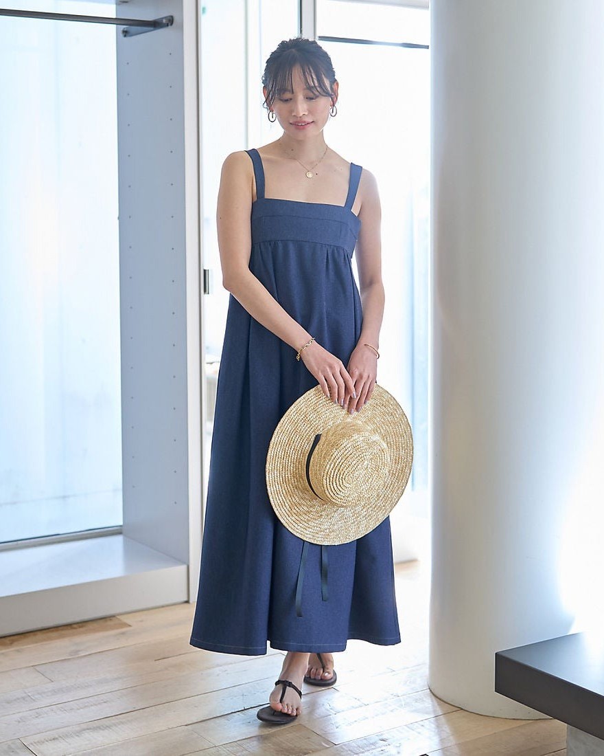 15.【つば広ハット×デニムフレアワンピースで大人可愛い休日コーデ】