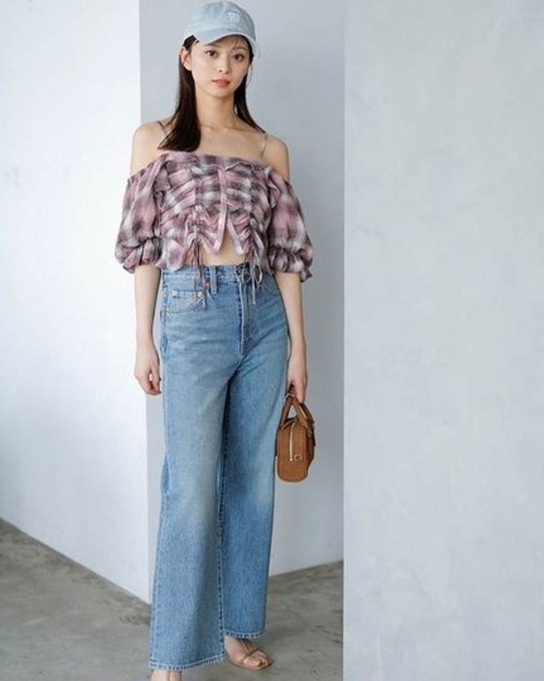 クロップド丈のトップスを合わせることで、若々しくフレッシュな印象を与えることができます!
