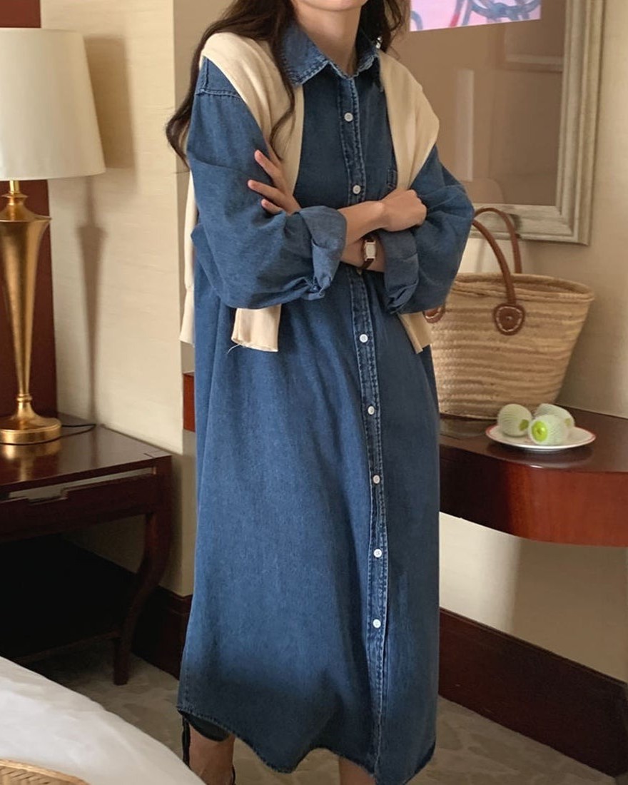 さらっと着れるシャツワンピースは1枚持っていれば間違いなし。シンプルだけどデニム素材だと何だかオシャレに見えちゃう。