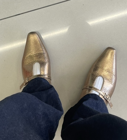 履いてないみたいに軽くて、長めのパンツからつま先が見えるのが一癖あってかわいいです。