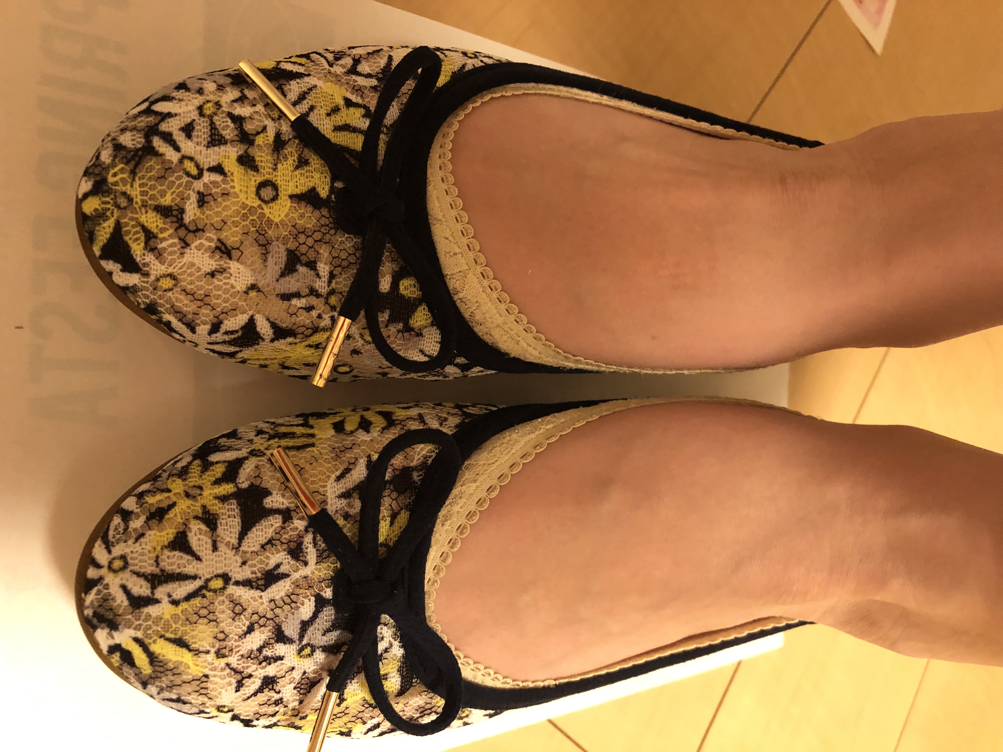 色違いで3足目です。普通のバレエシューズだと面白くないですが、チュール地で通気性あり、グレー、黄色と買ったら気に入ったので黒も欲しくなりました。オフィスで使う予定です。