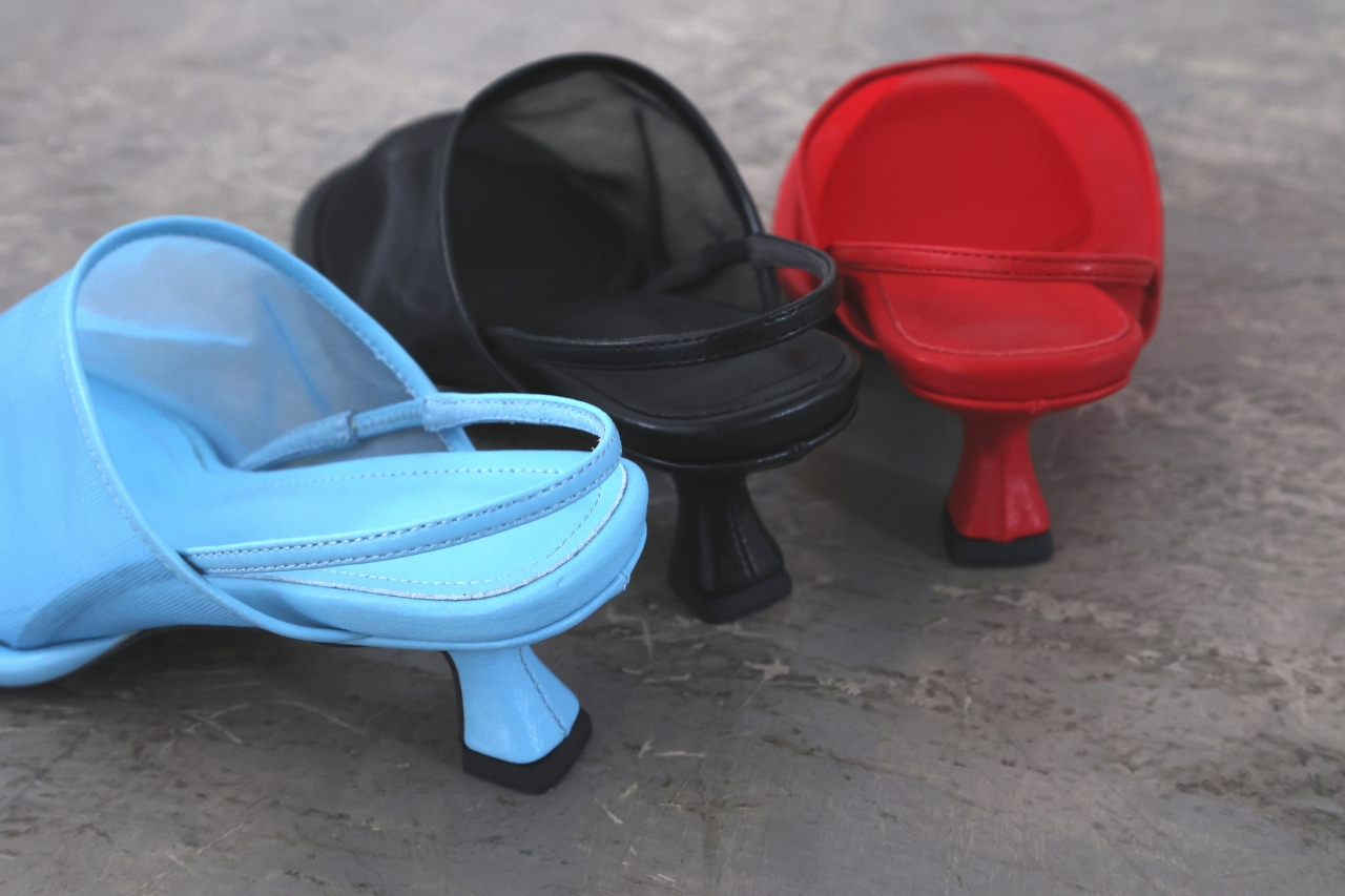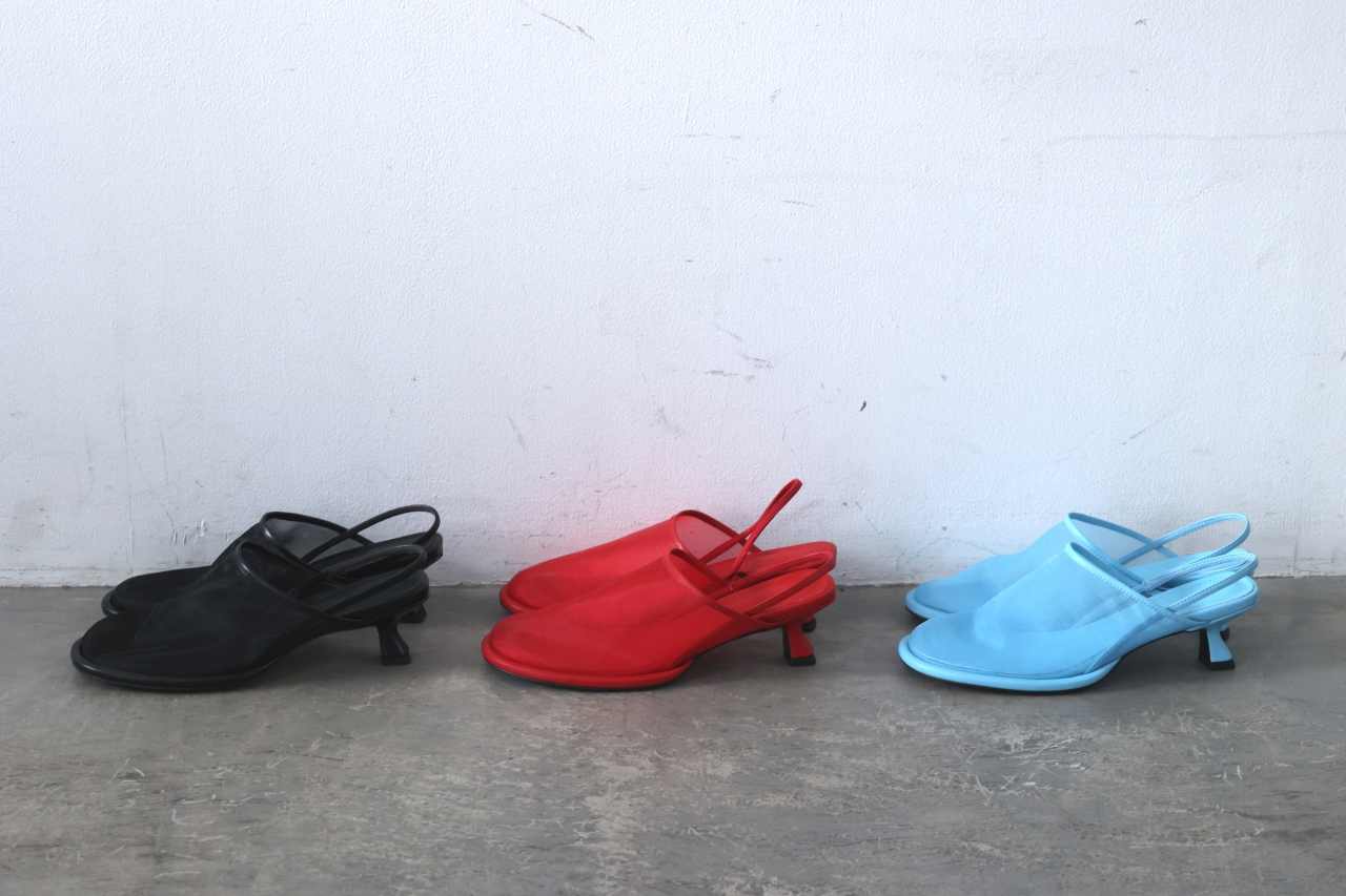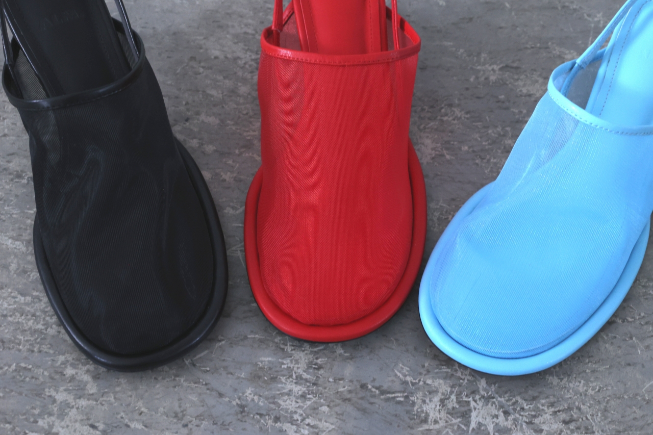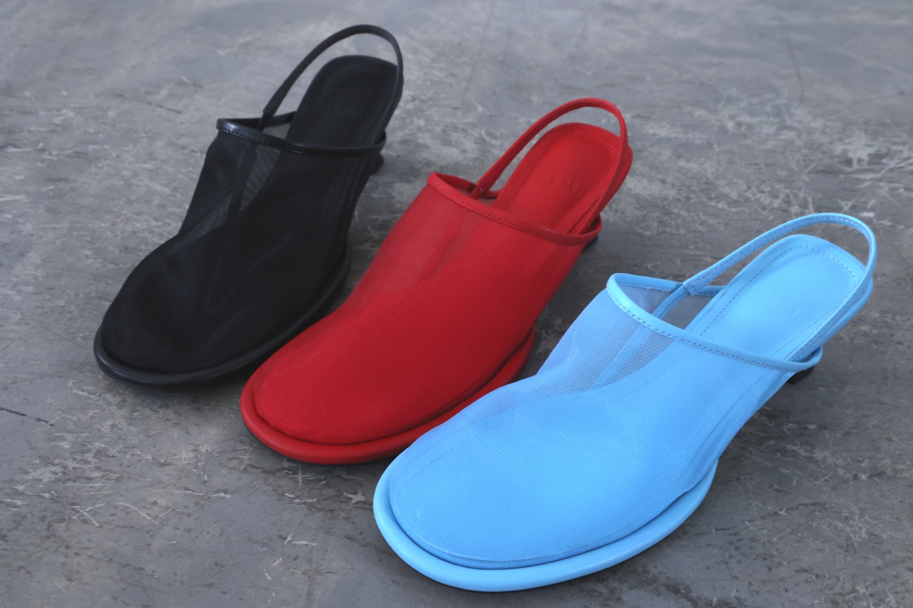 シアーメッシュ×スリングバックのデザイン性あふれるミュールパンプス。