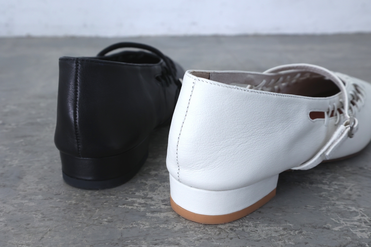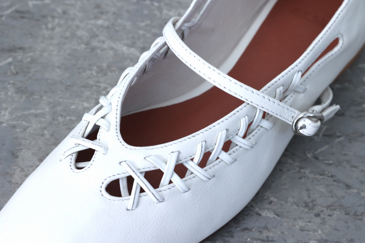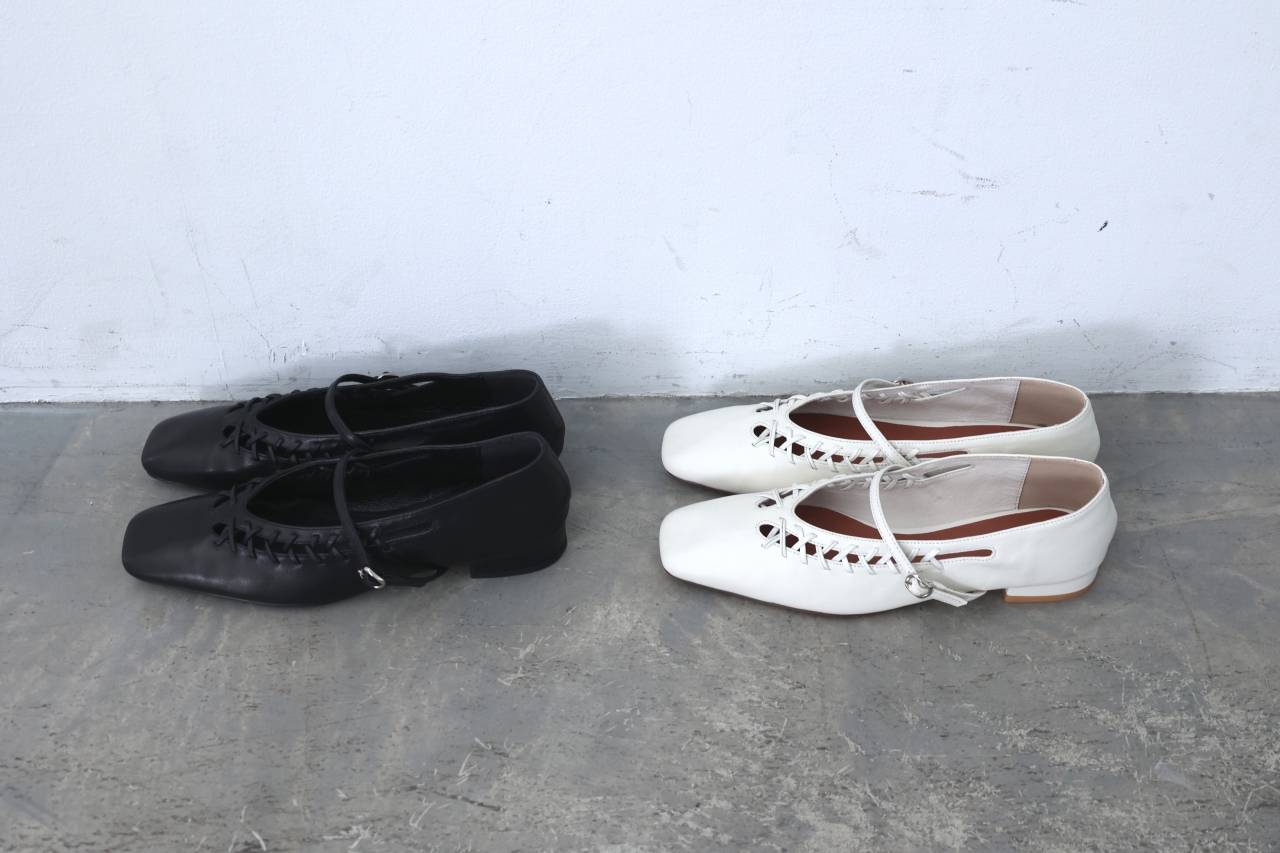 履き口の編み上げディテールがポイントのメリージェーンパンプス。