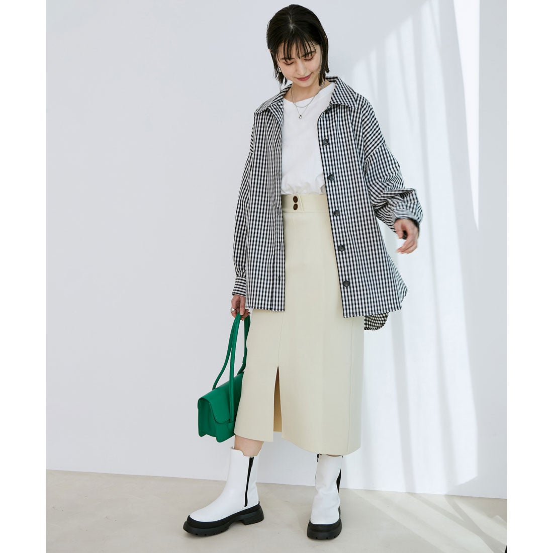 アクセントに、コーラルオレンジやシャーベットライムといったビビッドなカラーを効かせるのも今季らしい着こなし方です。