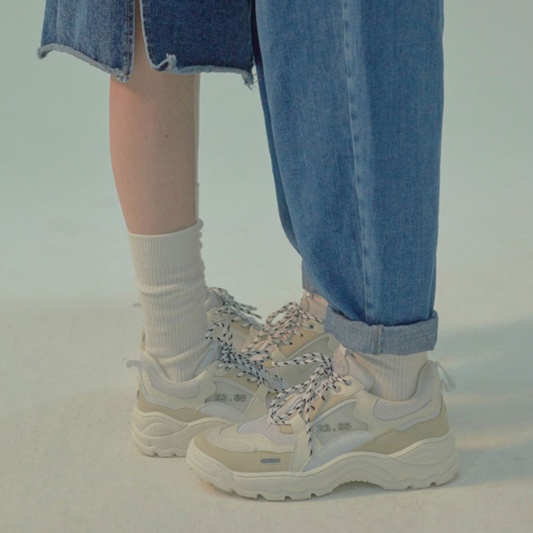 足元はサンダルやスニーカー、パンプスなどとも好相性。