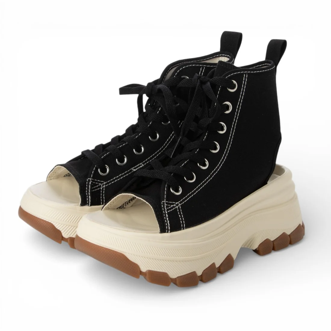 ハイカットスニーカーのようなホールド感と、オープントゥの抜け感を両立した、ストリートなアイテム