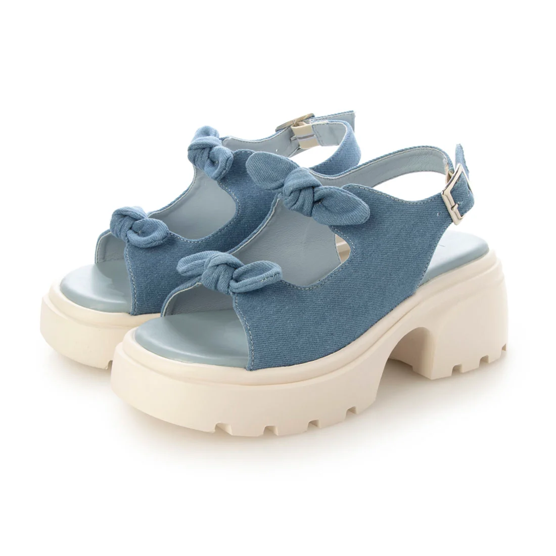 ■厚底ダブルリボンストラップサンダル (デニム)
