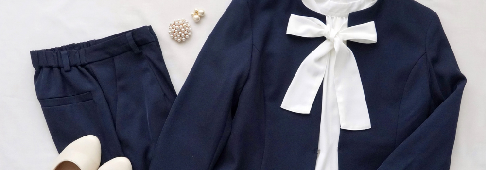 ■ 1. 【卒業式:厳かに】ネイビーセットアップ×ブローチ