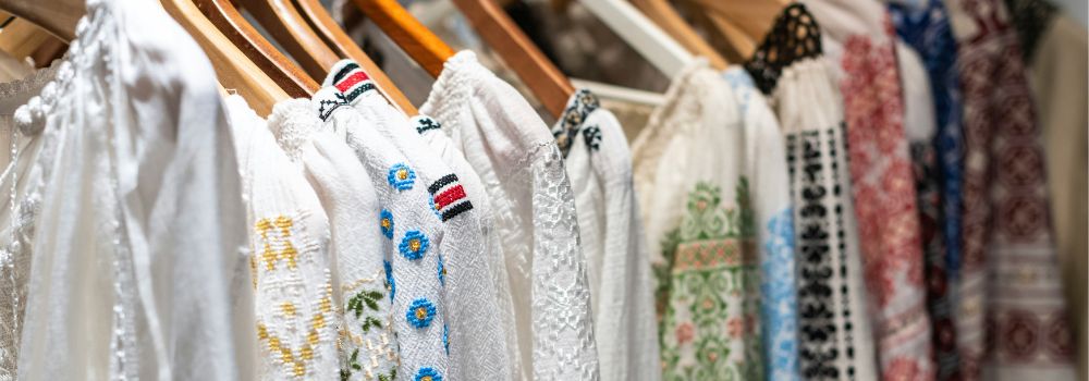 フリルやタック、ボウタイ、ボリューム袖など、視線を上や外に逃がすデザインが効果的。