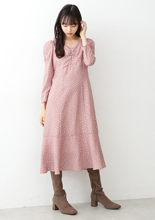 変形したランダムドット柄がおとなっぽいマーメイドワンピース