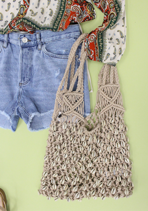 ビーチリゾートにピッタリなデニムショートパンツのコーディネートには、フラットシューズを合わせるのが◎