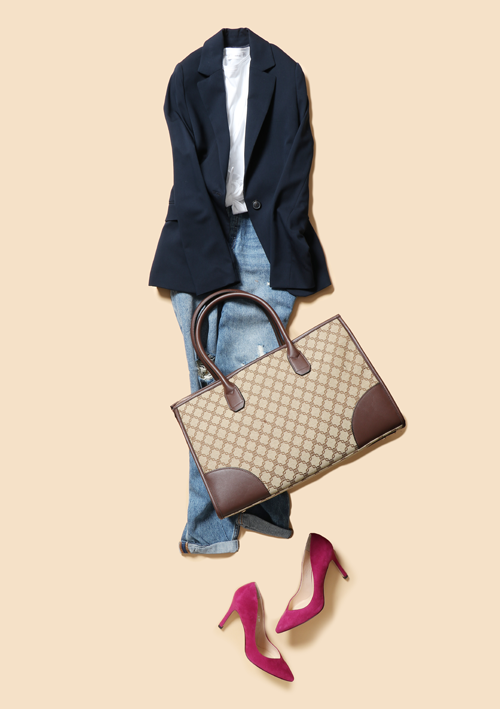 たすき掛けしたシャツを色味を合わせているのもポイントです。