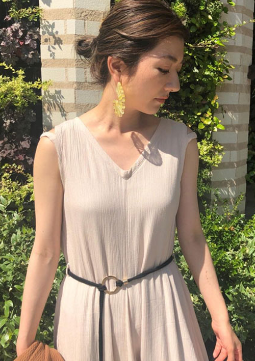 前後どちらが前でも着れるワンピースは風通しが良く歩いた時の揺れ感がとても綺麗に見えます。