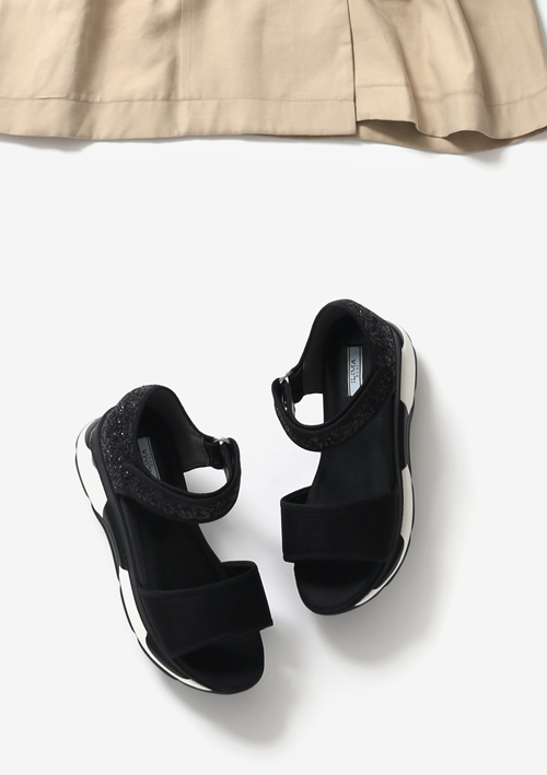 足元は、ILIMAで大人気のプラットフォームサンダルを合わせて。