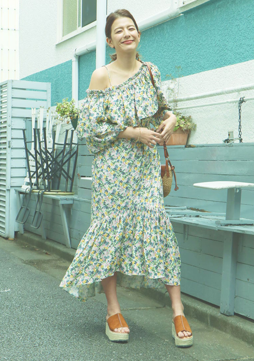 足元は、ILIMAのフラットサンダルを合わせて。
