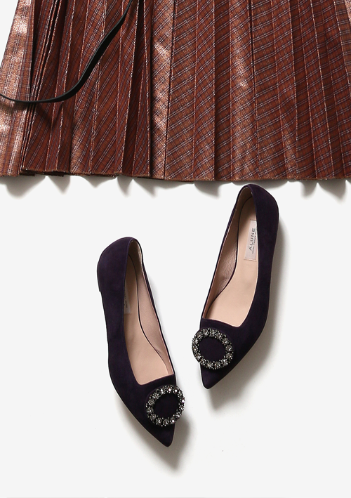 shoes:ALUNE SEVEN TWELVE THIRTY ビジューフラットパンプス (ダークパープルスエード)