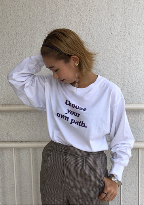 インナーはTシャツにして抜け感を出すのがポイント。