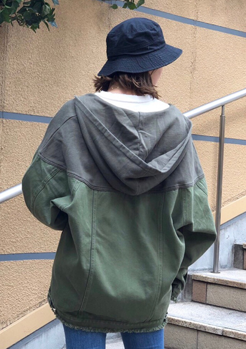 スウェット素材とコットン生地を組み合わせたパネルデザインのフーデッドジャンパーは、スウェットパーカーをレベルアップしたようなアイテムとして、軽羽織として季節の端堺期や春先にも活躍するアイテム。