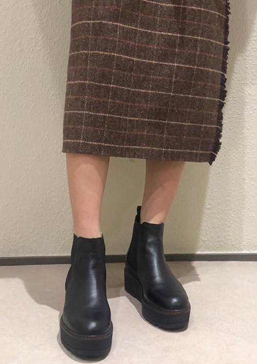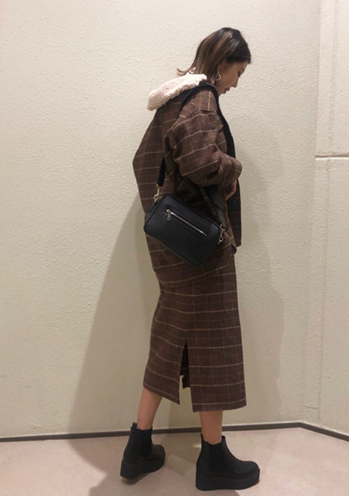 スカートは後ろにスリットが入っているので、歩きやすく、短めなので、ブーツと合わせるコーディネートもおススメです!!