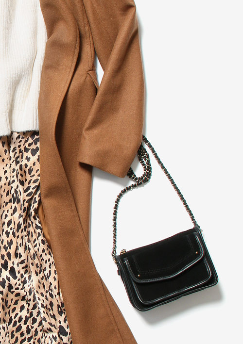 今季着たいキャメルロングコートと、トレンドのレオパードを合わせた大人カジュアルなコーディネート。