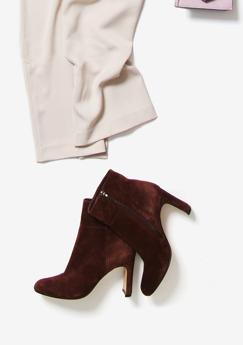 上品な赤味ブラウンがトレンドライクなモードエジャコモの今季のショートブーツを使って。