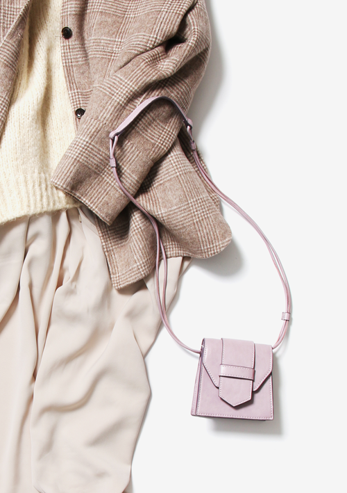 ニットにシャツジャケットを合わせて、温度調整をしやすいようにした今の季節にピッタリのコーディネートです。