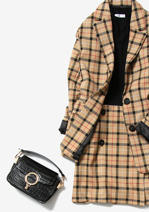 大判チェック柄は、ブラックで統一感を出してコーディネートをまとめるのが◎