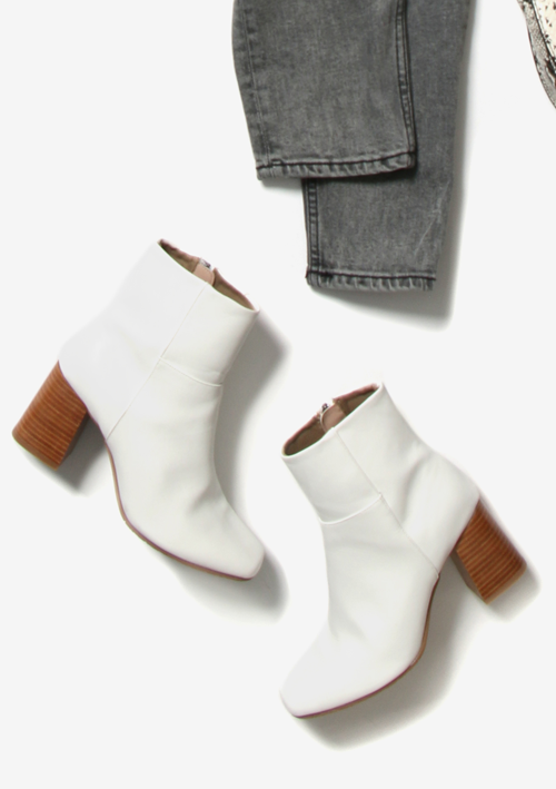 シンプルな型のブーツから、トレンドのホワイトカラーをチョイス。