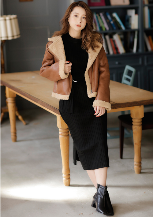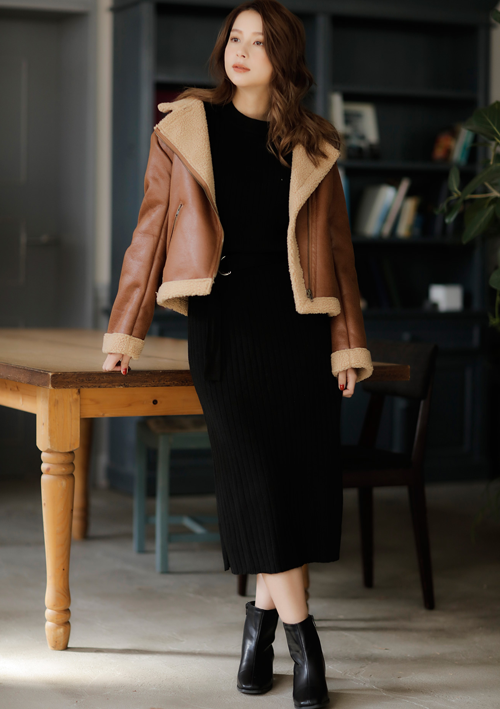 サッと1枚で着るだけでサマになるシルエットがトレンド感のある着こなしに導くニットワンピースは太めのリブと柔らかなニットがリラックス感のある快適な着心地を演出。