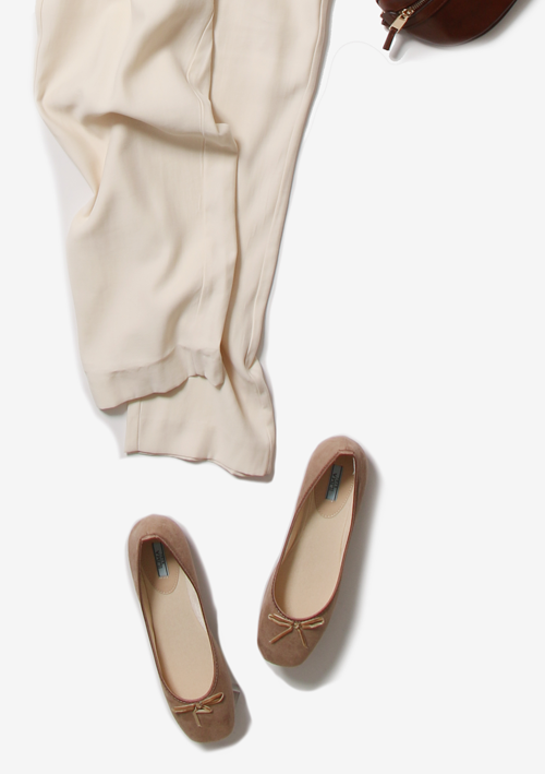 shoes:【EVOL】ILIMA スクエアバレエパンプス IM7935 (ダークベージュスエード)