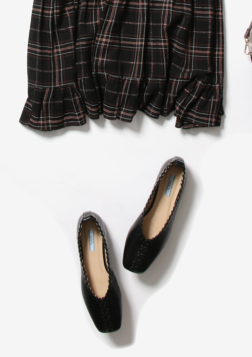shoes:【EVOL】 ILIMA ステッチスクエアVカットパンプス IN9074 (ブラック)