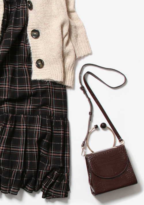 クラシックなワンピ―スは、ざっくりカーディガンでカジュアルダウン