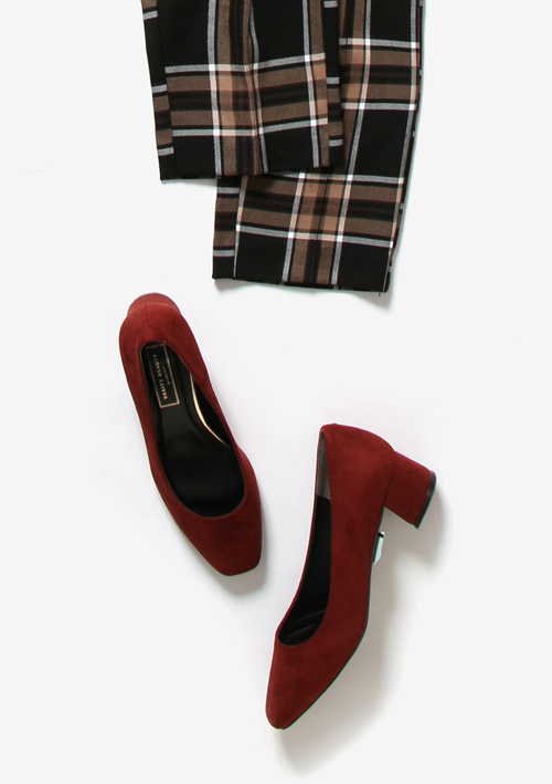 shoes:VANITY BEAUTY 【2019秋冬新作】スクエアトゥパンプス (レッドスエード)