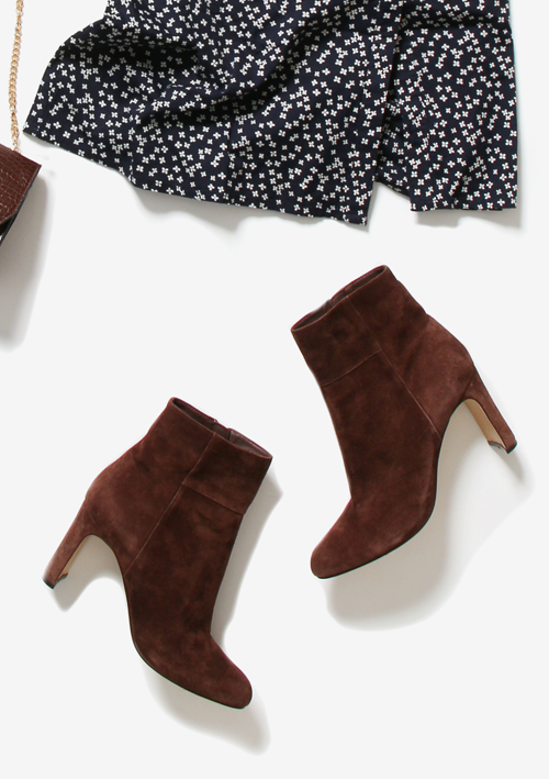 shoes:MODE ET JACOMO デザインヒールポインテッドショートブーツ (ダークブラウンスエード)