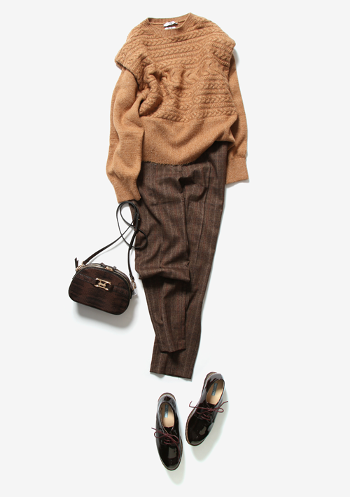 トレンドの「ブラウン」を使ってマニッシュなスタイルに