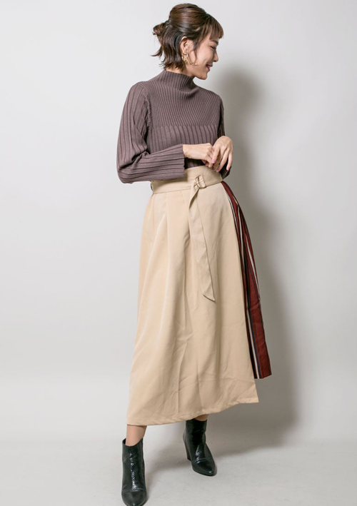 トップスは、ブークレ糸をローゲージで編んだボリュームのあるニット。