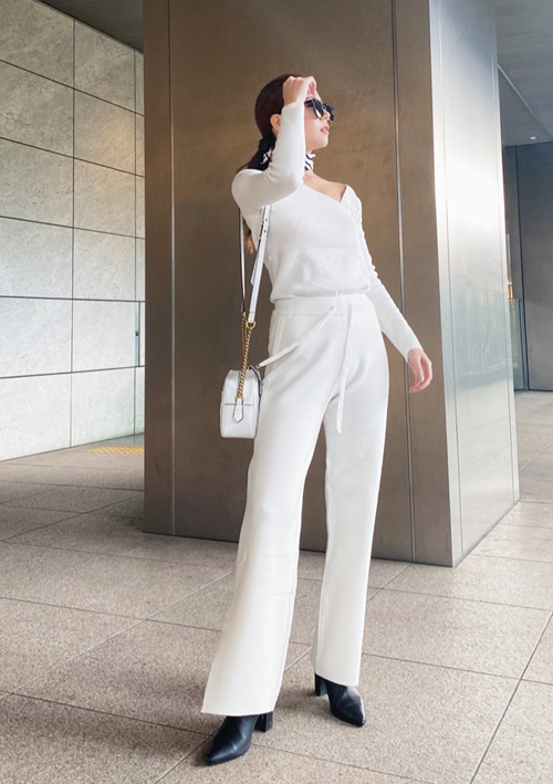 上下別でも使い回しのできるセットアップ♡オールホワイトで少し春を先取り♪ワンポイントのゼブラ柄スカーフでEGOISTらしさを。
