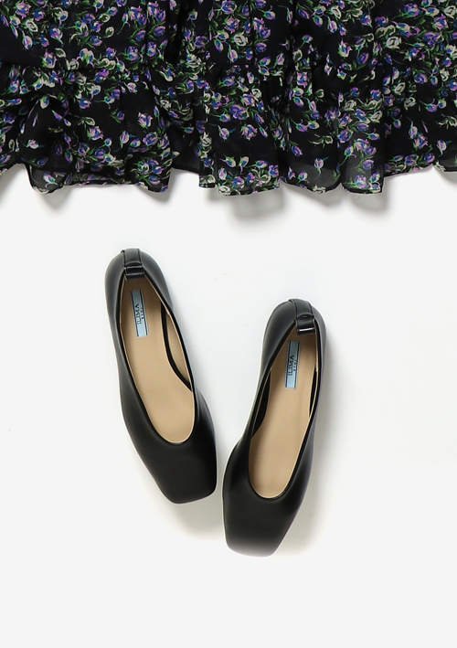 shoes:【EVOL】 ILIMA スクエアフラットパンプス IN9075 (ブラック)