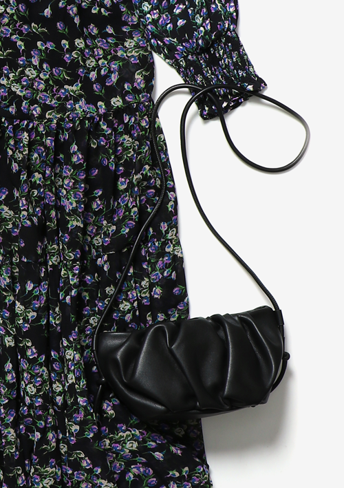 MANGOの2020SS新作セットアップは、ブラックベースにパープルカラーの小花柄が上品な雰囲気。