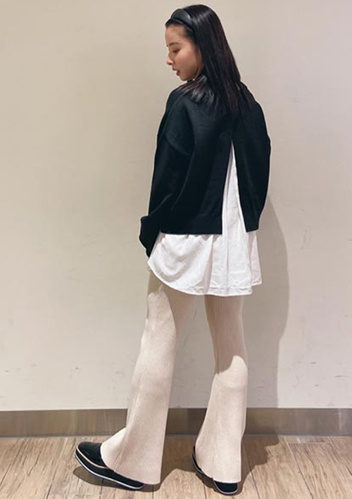昨年に引き続き人気継続中のふらニットパンツは、カジュアルなスニーカーやブーツとも合わせやすいフレアシルエットです。