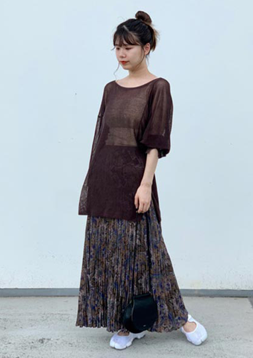 ゆったりとしたボリュームスリーブに、バックスタイルの大きなスリットが抜け感のある着方を楽しめます。