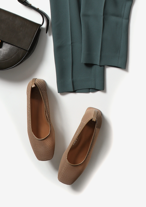全体的にメッシュ素材を使用したスクエアパンプス。