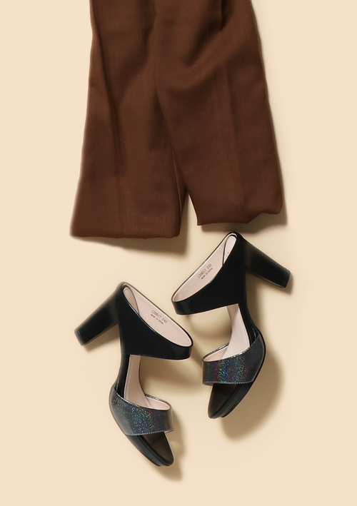 shoes:COCA ストーム付き ダブルベルト ミュール 8cmヒール サンダルミュール (ブラック)