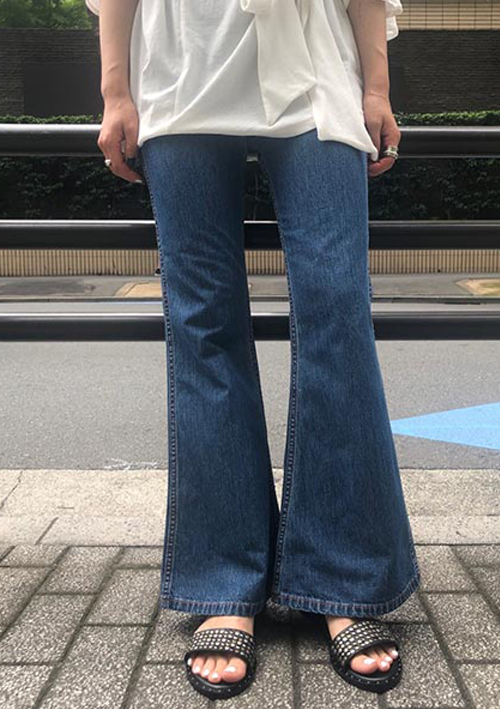 フレアデニムパンツはSM2サイズ展開なので身長問わずジャストサイズで履いていただけます。(Sサイズ着用)