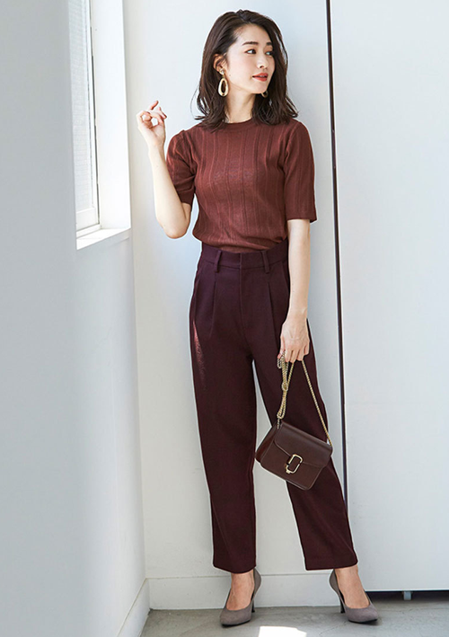 オープンカラーで綺麗めに着こなせるので、ちょっとしたお出かけにもピッタリ◎
