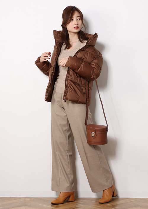 今季のダウンは、トレンドのブラウンカラーをチョイス。
